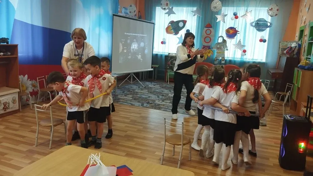 12 апреля мы отмечаем День космонавтики . Работники В-Вознесеновский отдела в рамках Всероссийской акции, приуроченной ко Дню космонавтики Российской Федерацией для воспитанников детского сада "Солнышко" провели интеллектуальную игру «Космос рядом». Игра посвящена достижениям нашей страны в космосе. В ходе игры участники смогли познакомиться с внутренним строением космических кораблей и космонавтами, узнают о подготовке к космическим путешествиям и о том, как космос повлиял на кино и нашу жизнь. Ребята окунулись в загадочный мир звезд и планет, познакомились с историей развития космонавтики, с помощью презентации узнали о том, как развивалась космонавтика, вспомнили имена первых космонавтов-героев. Затем участники прошли испытания на готовность к полету в космос: им понадобились знания и смекалка и ловкость.